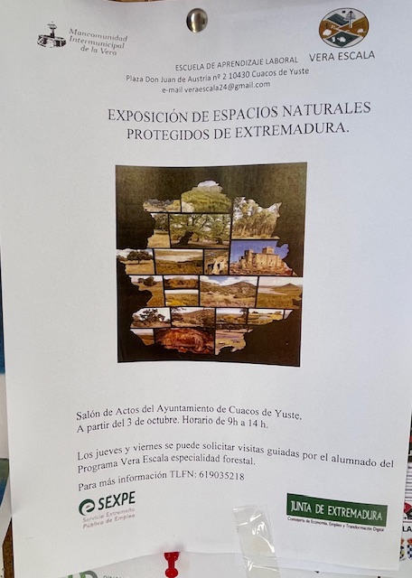 ℹ️ Desde la Alcaldía de Cuacos de Yuste se informa que, a partir de MAÑANA, VIERNES, 3 DE OCTUBRE, estará abierta la exposición "Espacios Naturales Protegidos de Extremadura", organizada a través del Programa Escala (especialidad forestal), que se está desarrollando en el municipio.